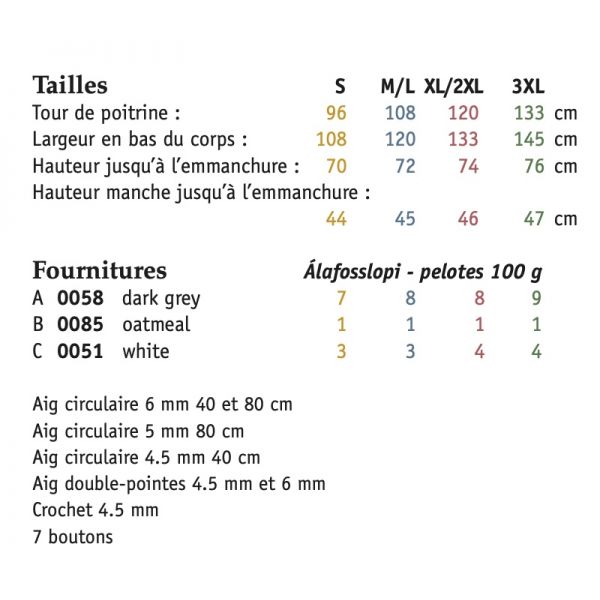 Les pack contiennent la quantité de laine pour réaliser le manteau dans la taille indiquée.
